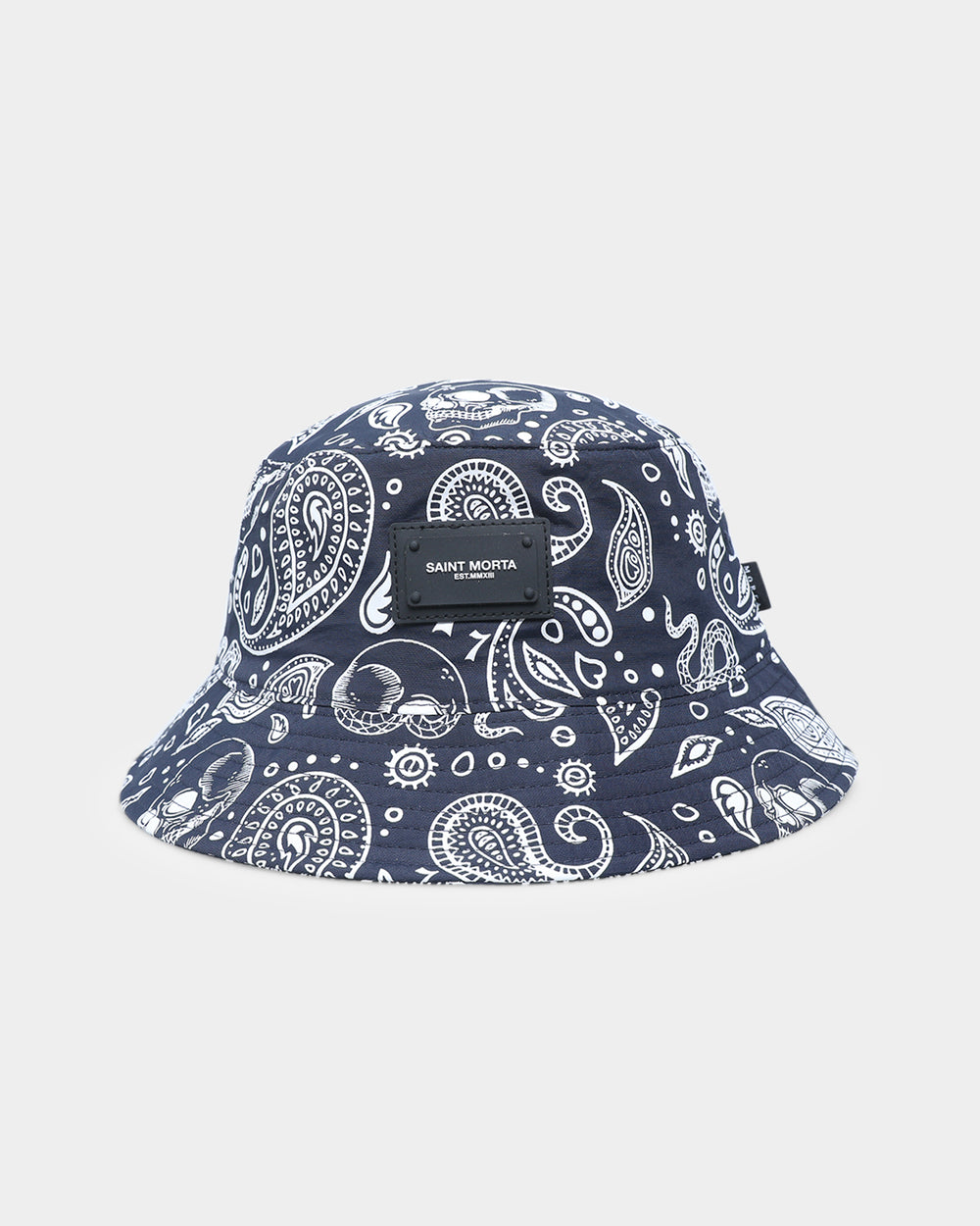 Cop the heat with Saint Morta's Paisley Skulls Bucket Hat. With an eye-catching all-over paisley print, Saint Morta rubber logo badge on the crown, and eyelet ventilation to keep things cool, this bucket hat will take your look to a whole-'nother-level.
