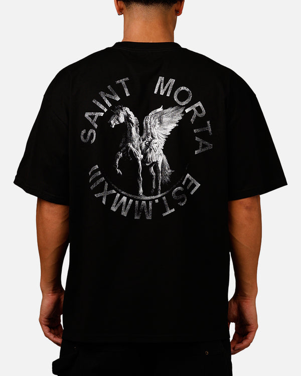 Elevate your everyday looks with this powerful Saint Morta tee. Featuring striking printed graphics, dropped shoulders and twin-needle stitching that makes this piece a wardrobe essential. What's not to love? Be sure to secure yours today while stock lasts.