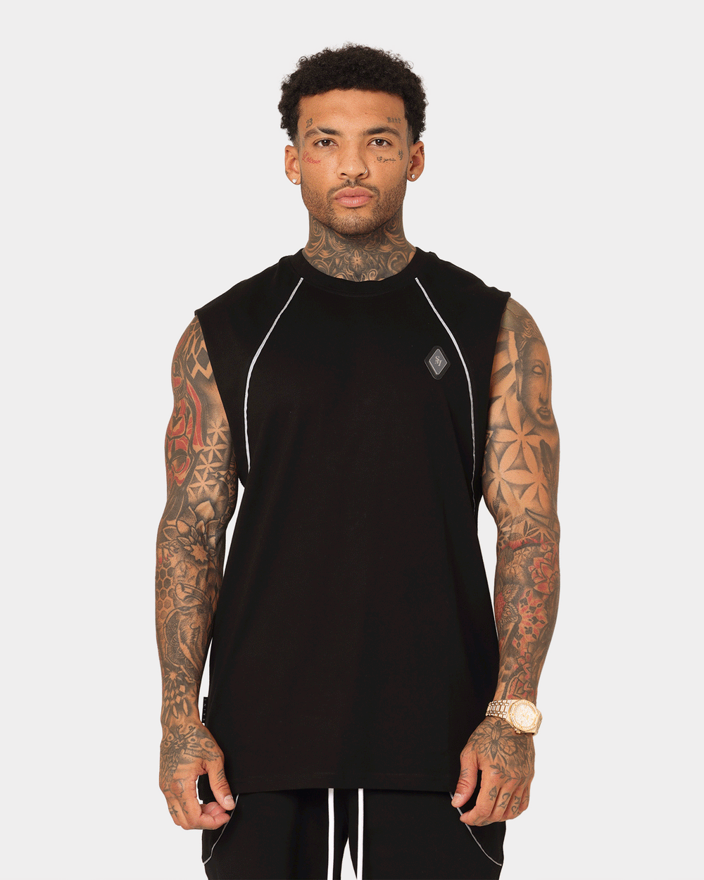 Catch the light and show off those arms in the Polaris Raglan Muscle T-Shirt from Saint Morta. Reflective piping features alongside raw cut scooped armholes. The metal logo badge pops on the chest, with a ribbed crewneck to the upper to finish this tee.