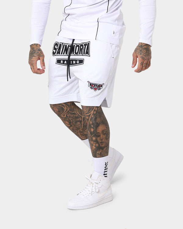 Gear up in the Pro Racing Basketball Shorts. Appliqués decorate the front of these mesh shorts, with an elastic waistband to keep the fit secure no matter what gear you're cruising in.