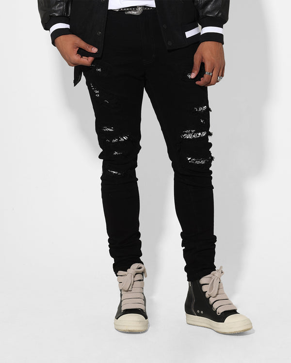 - Heavy distressing with Bandana detailing underneath