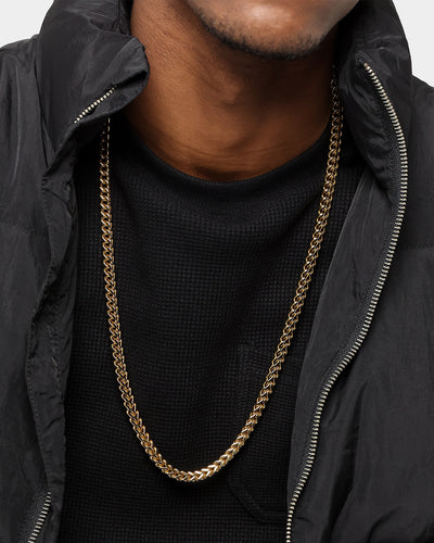 Saint Morta has branched out this season and stepped into the world of chains. The Franco 30 Inch 6MM Chain features a classic design, strong clasp and gold coating. Ready to finish off every outfit with ease, be sure to get your hands on this badass chain today and hit the streets in style with Saint Morta.