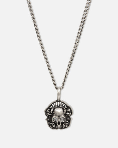 The Skull And Roses Necklace by Saint Morta is sure to add a tough of edge to any 'fit. Featuring a stainless steel base so you know it's made to last with a stand-out skull pendent with CZ stones in the eyes for an eye-catching look. Grab yours today while stocks last.
