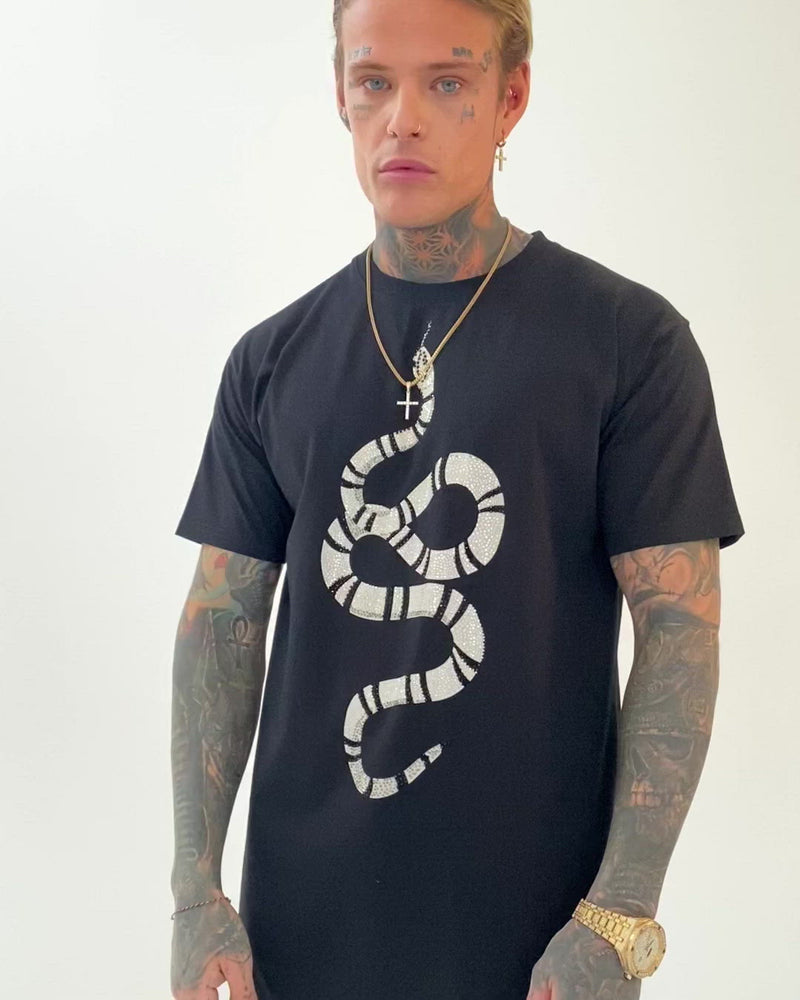 Slide into summer with the Snake Rhinestone T-Shirt from Saint Morta. Featuring a custom snake design that has been blinged up, cotton jersey, and premium construction. Get in quick while stocks last!