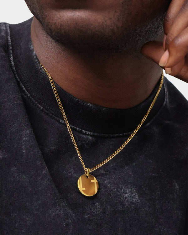 Cop the XXross Pendant Necklace for a clean look. The fine chain is paired with a simple round pendant featuring a double cross engraving. All done with stainless steel and 18K gold plating.
