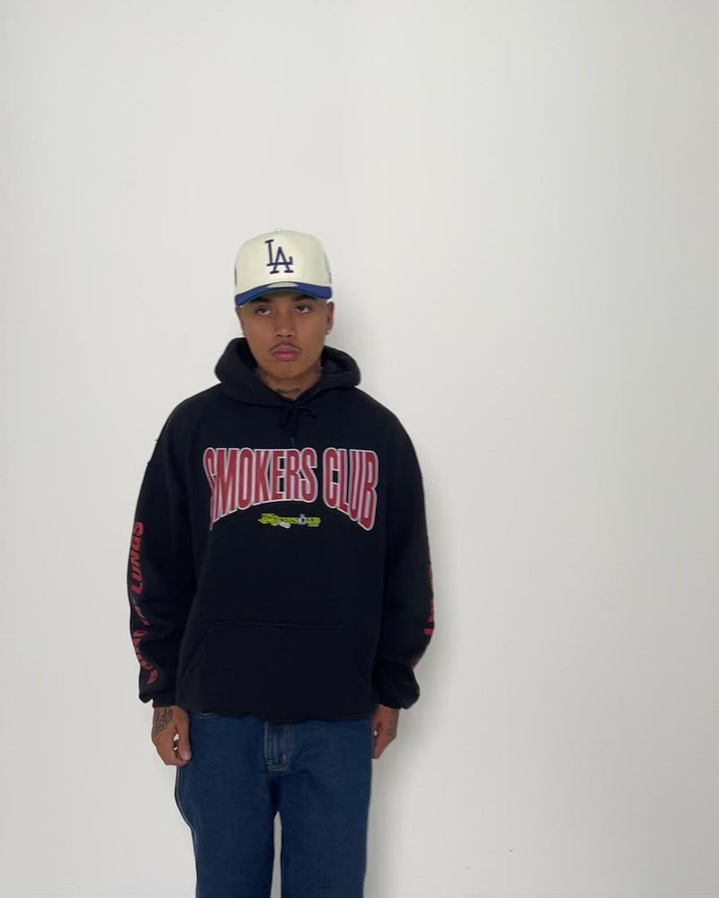 Rep the event of the year with the Smoker's Club Hoodie. This exclusive hood features custom printed and textured Smoker's Club X Culture Kings collab graphics to the front and sleeves, and an enlarged line-up printed to the back with that vintage look and feel, all on a premium cotton twin-needle construction to top it off. Skip the FOMO and cop today!