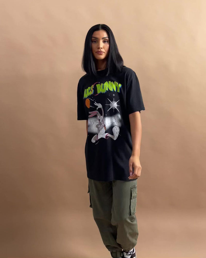 The Space Jam Bugs Bunny Slam Dunk Vintage T-Shirt features official graphics to the front. A slam dunk kind of tee.