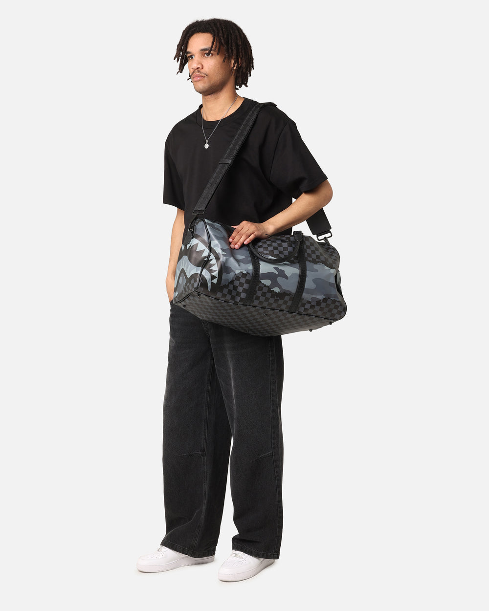 Featuring a black checker board motif with camo accents, the Sprayground Split Up Camo Tear Large Duffle bag brings style to travel. The luxurious vegan leather design has a spacious main compartment - with a separate space for your footwear and internal organsers for easy packing. Outfitted with a removable bespoke shoulder strap and dual haul handles, the Sprayground duffle bag comes finished with matte black metallic hardware. Cop yours today at Culture Kings.