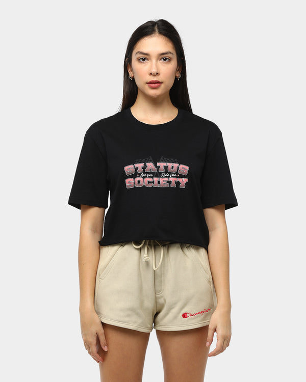 Status Society was designed with 3 key principles in mind: Pushing boundaries, self-expression and trendsetting. Influenced by social media, street style and pop culture, Status Society is bold, universal, essential and forward-thinking. Status Society speaks to the girl at the top of her style game who is always looking for the latest threads to hit the streets.