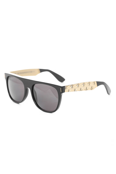 Designed for summer 2014 motorpsycho collection, flat top zoot gold pairs a classically audacious silhouette with a special golden pattern for the sturdy metal arms. Shiny black acetate completes this pleasantly confusing combination of clean-cut elegance and self-indulging exaggeration. Flat top zoot gold sports lenses by Zeiss in black.