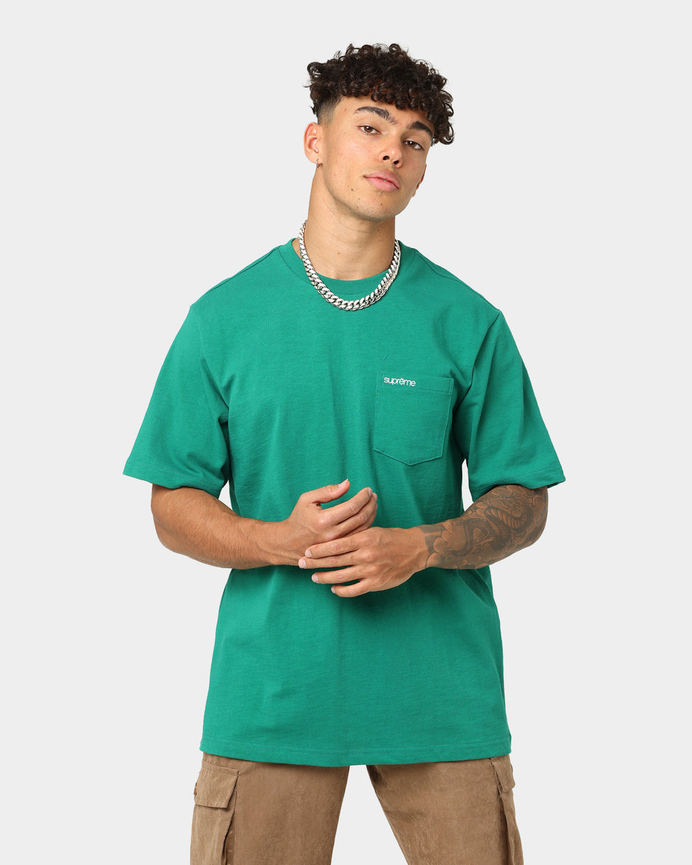 Supreme branding and embroidered chest pocket make the Pocket T-Shirt an iconic piece. We've opened up our vault of rare and collectible Supreme items for you to cop online, including pieces that were previously only available in-store. As this is a limited consignment piece from a previously sold-out collection, this item is sold at the current market price usually above the original retail price. Get in fast as stock is super limited.