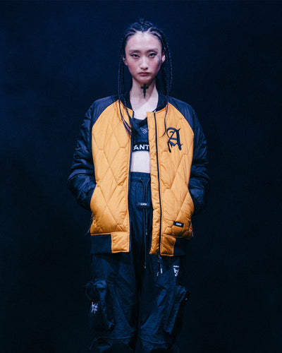 Top off your look with the Corvus Quilted Bomber Jacket. This is the varsity jacket with a twist featuring a quilted body, two-way zipper closure, and striped cuffs, collar, and hem. Go against the status quo with The Anti Order.