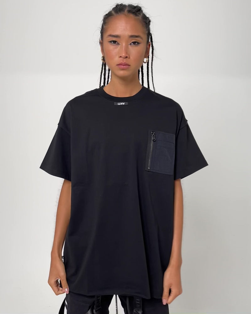 The Non-Tactical Oversized T-Shirt gives a minimalistic look to your outfit. A zip chest pocket is the main feature, with a loose, oversized fit and exposed stitching for a casual vibe.