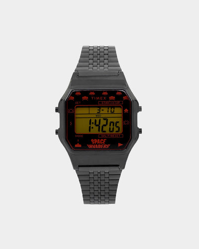 Retro in style and design, the Timex 80 x Space Invaders 34MM Watch throws it back to the iconic '70s arcade game. Decorated with "Invaders" and with digital specs, this watch hits close to the heart.