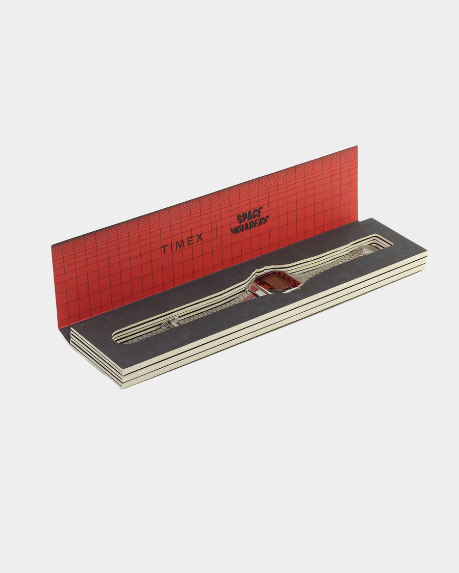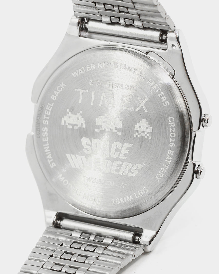 Retro in style and design, the Timex 80 x Space Invaders 34MM Watch throws it back to the iconic '70s arcade game. Decorated with "Invaders" and with digital specs, this watch hits close to the heart.