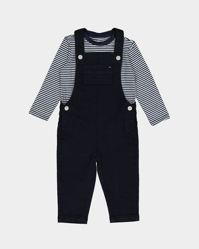 Put your little one in the cutest outfit with the Infant Denim Dungaree Set from Tommy Hilfiger. The denim dungarees feature pockets and snap button closures for easy changing. The soft cotton blend tee also features a snap button closure, with contrasting stripes to finish the look.