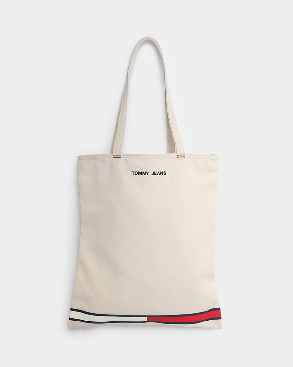 Designed to fit it all, the Canvas Tote from Tommy Jeans makes sure you won't forget anything at home. Made from recycled materials, this tote keeps it clean with Tommy Jeans branding to the front. Built to store everything from your laptop to your reusable straw, this tote is ready for the day trips.