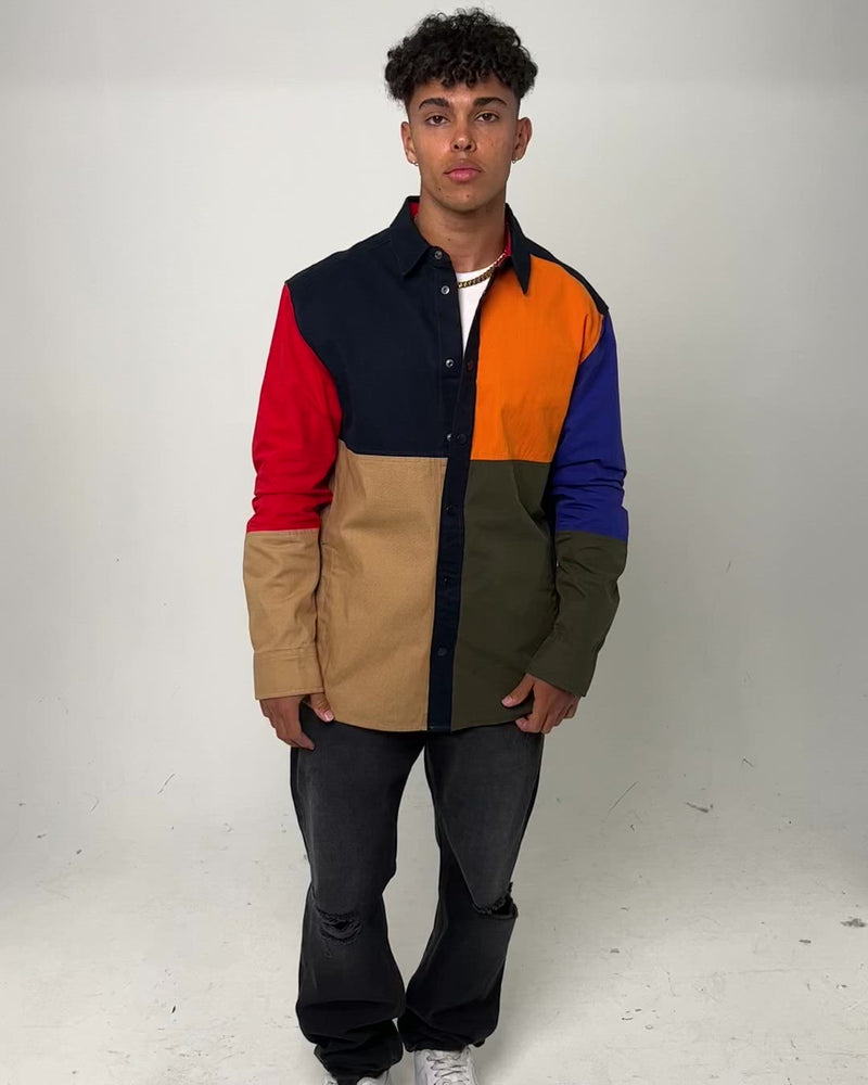 The Heritage Shirt is '90s swagger at its peak. This overshirt features a bold colour-blocked design in muted tones. Topped up with a snap button closure, semi-spread collar, and recycled cotton blend.