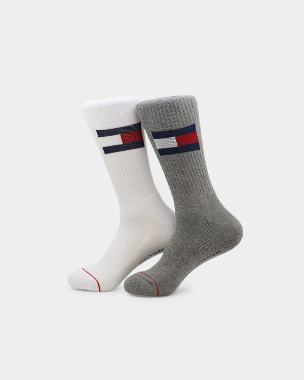 Don't think twice about the socks you're putting on for the day, and grab the Large Flag Cotton Cushion Socks 2 Pack from Tommy Jeans. These socks feature signature Tommy Hilfiger branding, rib-knit fabric and premium construction.