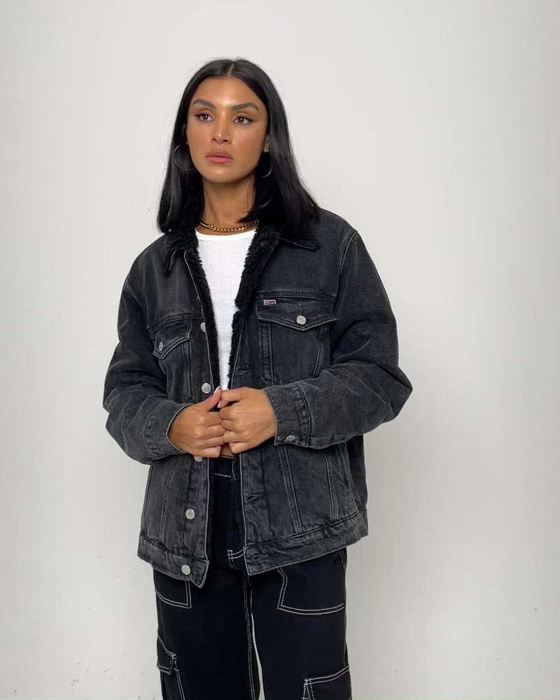 Beat the cold in the Oversized Sherpa Jacket. With retro-inspired styling in a faded black, and an inner sherpa lining for warmth, this jacket is a winner.