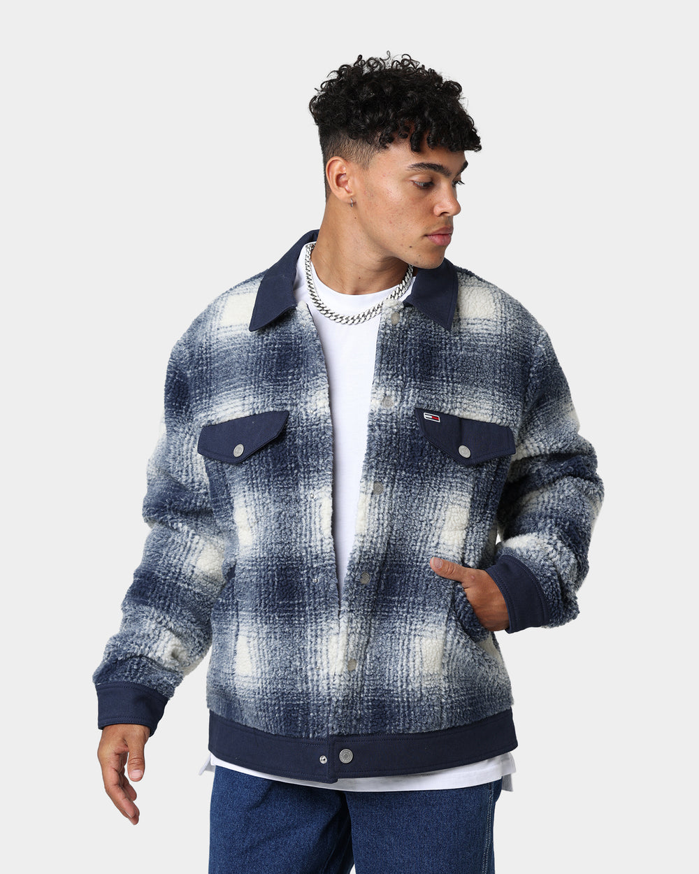 A true streetwear staple, the Sherpa Check Trucker Jacket by Tommy Jeans has you covered, elevating your streetwear while keeping you ultra-warm. Featuring an embroidered logo at the front on an all-over check design with a premium Sherpa made from a partially recycled blend, and soft lining to keep you comfy all day and night long. This coat is an essential stand-out piece, cop today.