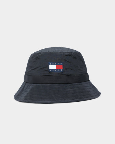 Perfect for styling a laid-back look, the Urban Tech Bucket Hat features a classic design. Featuring recycled cotton, a short brim, and fleece lining. Topped simply with a rubberised Tommy Jeans rubber badge.