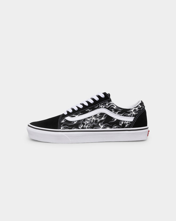 First known as the Vans #36, the Old Skool debuted in 1977 with a unique new addition: a random doodle drawn by founder Paul Van Doren, and originally referred to as the “jazz stripe.” Today, the famous Vans Sidestripe has become the unmistakable—and instantly recognizable—hallmark of the Vans brand. Featuring a timeless flame print against a solid black background, the Flame Old Skool pays homage to our heritage while ensuring that this low top, lace-up shoe remains as iconic as ever. It also includes durable suede and canvas uppers, re-enforced toe caps, supportive padded collars, and signature rubber waffle outsoles.
