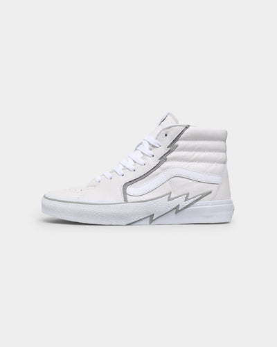 The Vans SK8 Hi-Top is the inaugural member of Vans' legendary legacy of high top skate shoes. It was the first to bring the supportive sensibilities of an athletic boot to the world of skating. This version features thunderbolt detailing along the eyelets emerging from the front bumper.