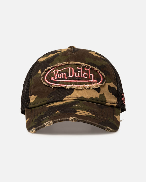 Von Dutch continues to be one of the most influential brands that has stood the test of time. This Von Dutch Camo Patch Trucker Snapback features the iconic logo patch on front, breathable mesh rear, and an adjustable snapback panel. Cop one of the most iconic pieces of headwear today at Culture Kings.