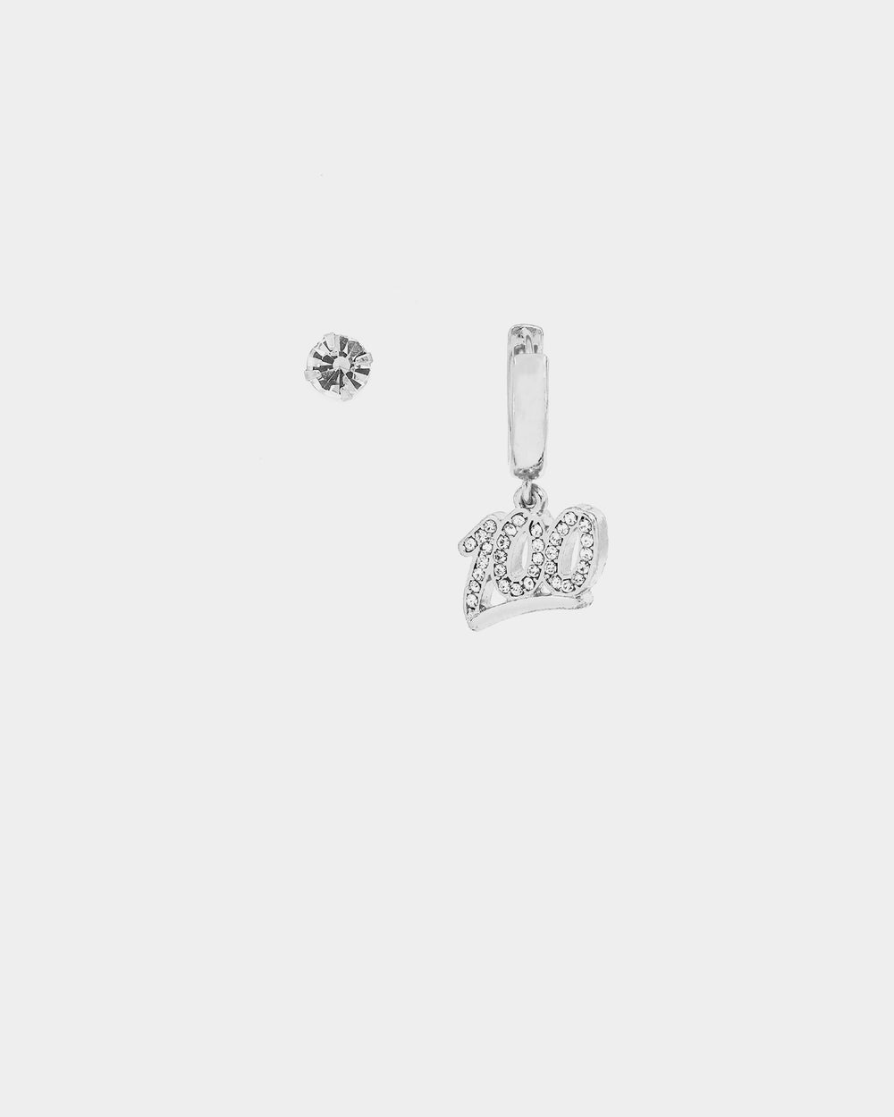 - Diamanté stud and hoop with drop 100 emoji with white glass crystal detailing