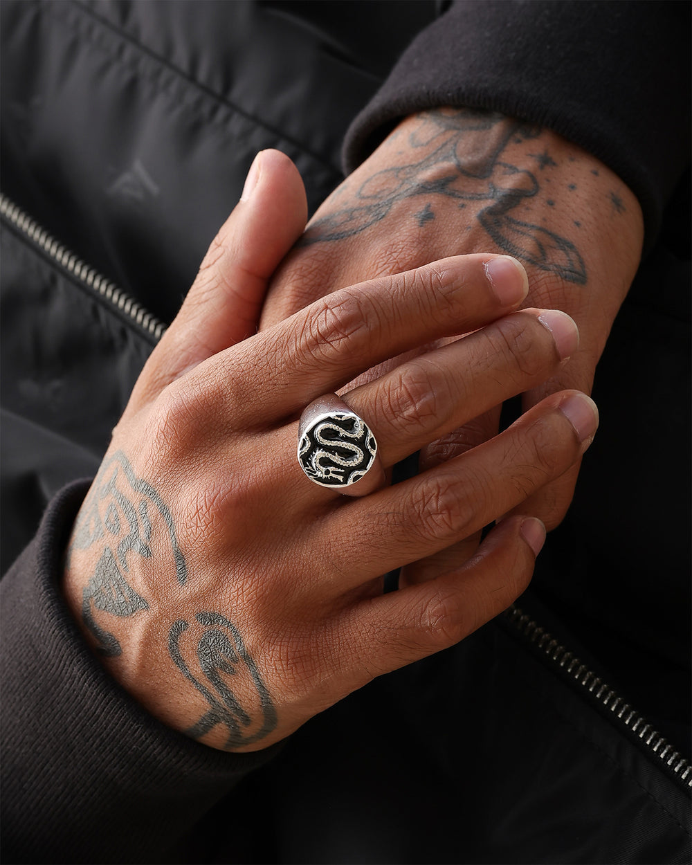 Unleash your wild side with the Serpentine Dragon Signet Ring. Ice up your look without breaking the bank by turning to the iconic designs from Wild from the Weekend. Featuring a serpent design on the round face, resin backing, and a glass crystal eye. Cop yours while stocks last!