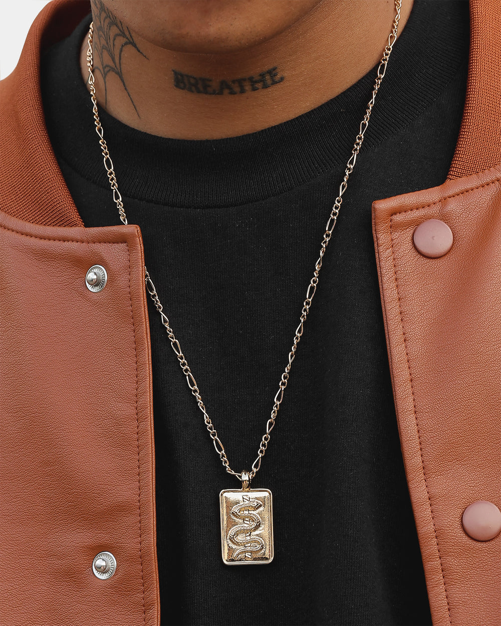 Wild for the Weekend knows how to create ice that looks baller without breaking the bank. The Serpentine Rectangle Necklace features a rectangular pendant with a serpent engraving that resembles the Rod of Asclepius which is a Greek symbol for healing. Fix your 'fits with this fresh bling.