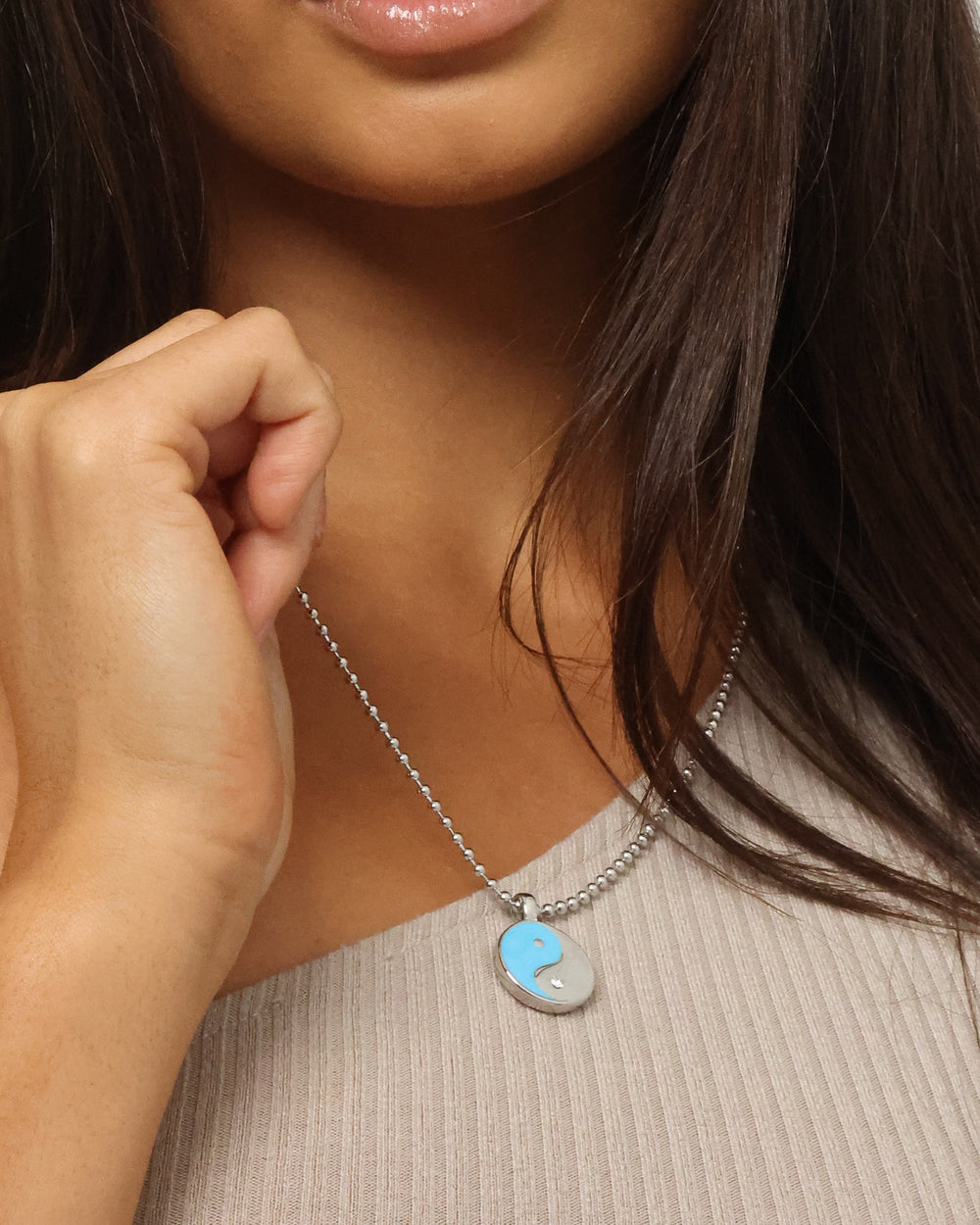 The Ying Yang Pendant features two designs in one, with the pendant showing two different coloured yin yang finished with crystal detail. Placed on a fine beaded chain for a strong but delicate finish.