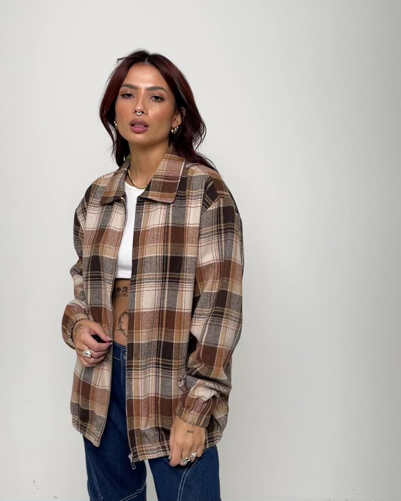 The Bursa Jacket features an all-over plaid print with full zip closure. The neutral colourway makes this an easy cop for layering, adding the perfect finishing touch to any outfit. Featuring an elasticated hemline and cuffs and dropped shoulders for a relaxed silhouette.