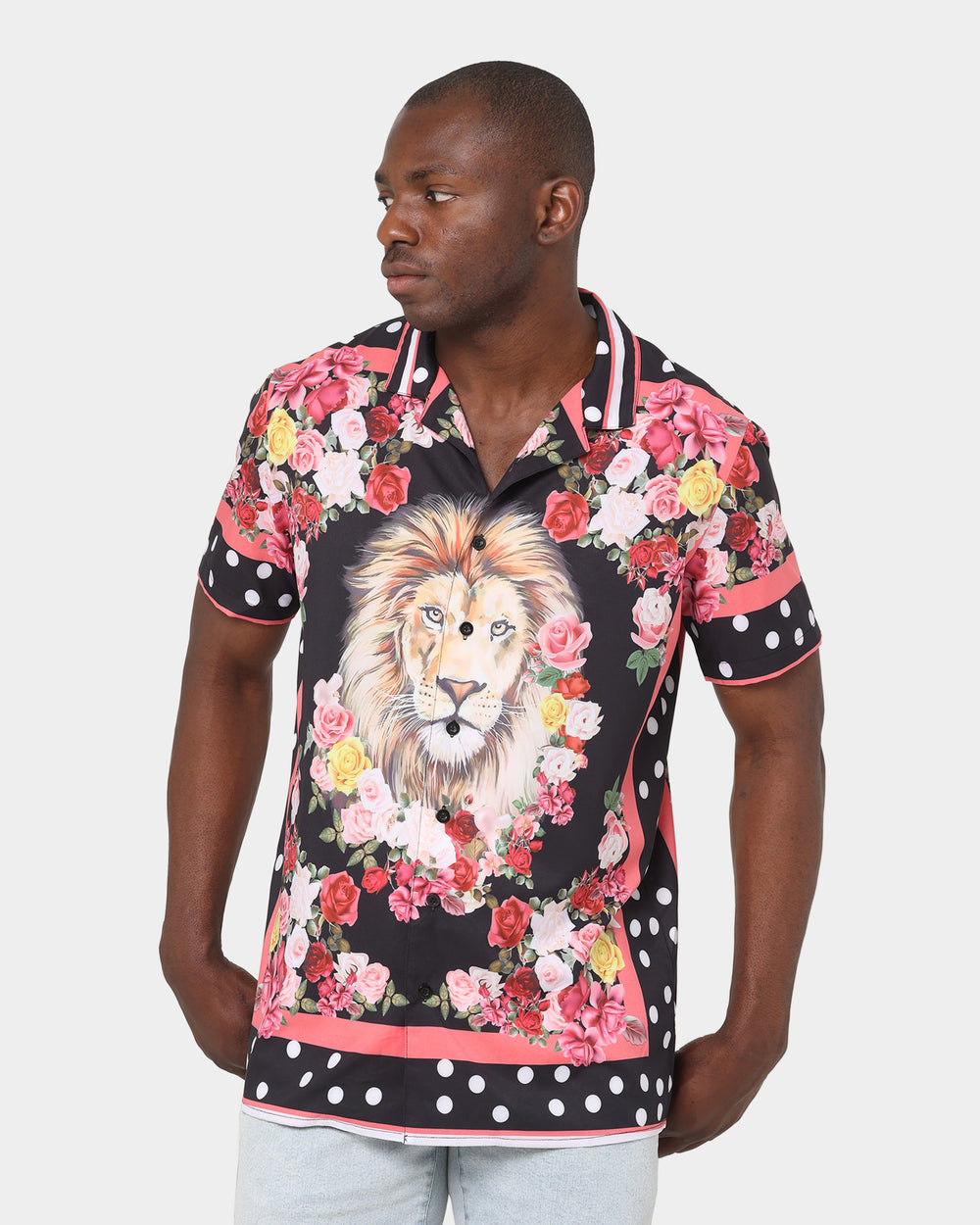 Let them hear you roar in the Lion Button Up Shirt from XXIII. A bold lion graphic features at the front and back, surrounded by floral and polka dot prints in an eye-catching design. This shirt has everything you need to be a king amongst commoners.