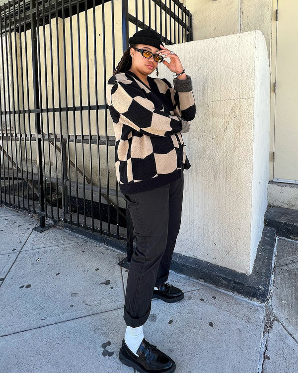 The Meda Check Cardigan is great to throw on over your fit for a casual look. The check knit features dual front pockets, a button-up closure, and ribbed trim. Available at Culture Kings today!
