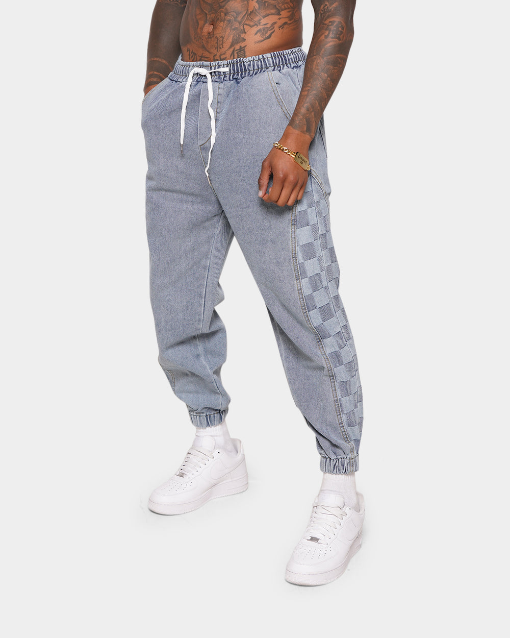 Elevate your 'fit with a fresh pair of jeans from XXIII. The Taamir Jeans are comfy as hell with their elasticated waistband and cuffs. Finished with a checked design imprinted on the sides and a stonewash.