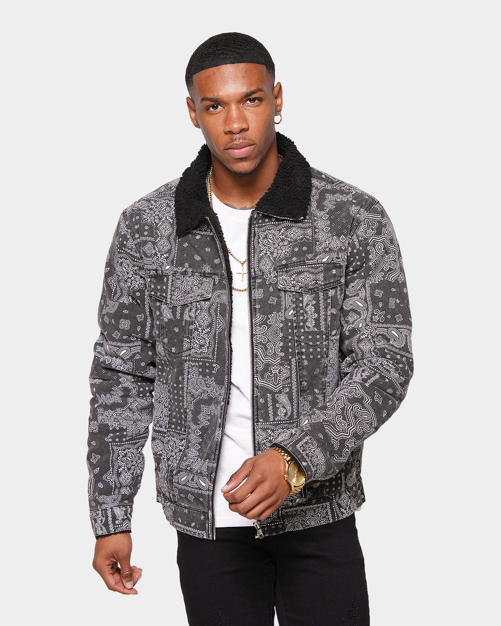 Bold and ready to hit the town, the Cashel Paisley Denim Jacket is for you. This fresh take on your regular old denim jacket is sure to make you stand out amongst the crowd. Featuring dual chest pockets, a button up front, and most importantly, an all-over paisley print.