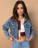 The Women's Cropped Denim Jacket is the perfect piece of outerwear to finish off your 'fits. The cropped design allows you to show off what's underneath the jacket and the raw, distressed hem gives it an edgy finish. Rep this jacket today!
